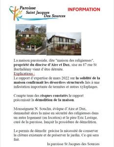 Lieu : 93 rue Georges Brassens à Parentis (chez Dominique WIRTH).